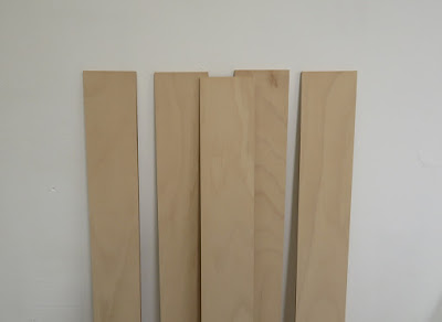 Na překonání výškového rozdílu 155 mm bude potřeba něco málo přes 2,5 okruhu. Nechal jsem si v OBI nařezat překližku 8 mm na 110 mm pásky. Sáhnul jsem po bukové, která je oproti různým jasanům a břízám pevnější (ale i dražší). Na pásky jsem si obkreslil šablony a vše nařezal. Někteří modeláři doporučují překližku instalovat ve dvou vrstvách tak, aby spoj dvou kusů překližky byl vždy podepřený. Tím si ale snižujete průjezdný profil, popř. zvyšujete sklon.
